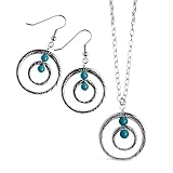 A circle, having no beginning or end, represents infinity, eternity, wholeness and femininity. Sterling silver eternal circles are decorated with traditional symbols and accented with blue turquoise beads in this necklace and earring gift set. Awesome gift for all ages! Necklace measures 18 inches L, earrings measure 1 1/2 inches L x 7/8 inch W. Read more